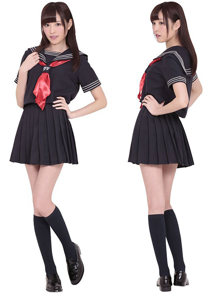 制服コスプレの定番!紺地に3本ラインの入った半袖セーラー服です。