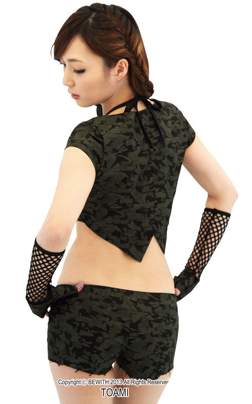お色気作戦で敵もメロメロ?セパレートタイプのアーミーコスプレ。