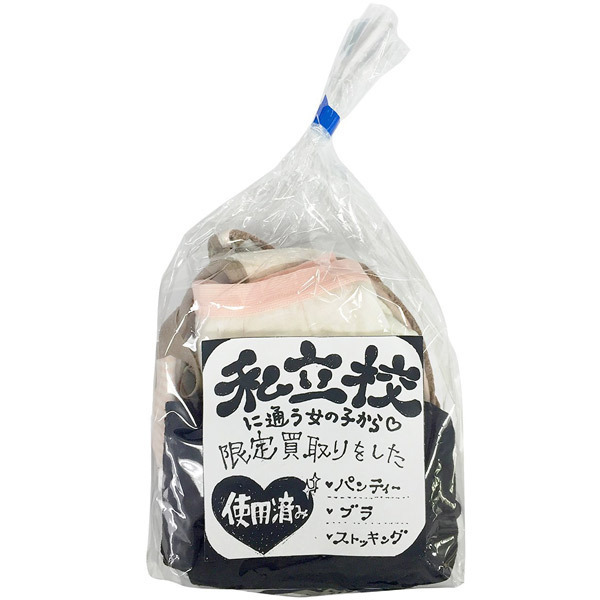 ●私立学校に通う生徒から買い取り●脱いだばかり!リアル感たっぷり●ブラ&ショーツにストッキング付●各1枚ずつの豪華な下着3点セット●生々しさを煽る透明袋入り。