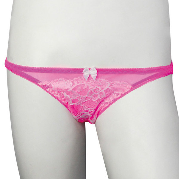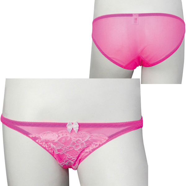 ●素肌を透かすピンクシースルー地●フロントに刺繍レース&リボン付き●履きこみしっかりフルバック仕様。