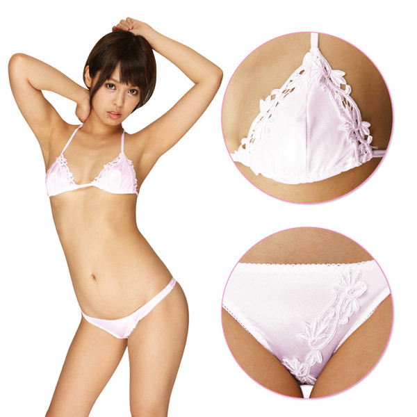 フラワー刺繍と光沢感でボディを華やかに彩る三角ブラ&Tバックショーツセット。