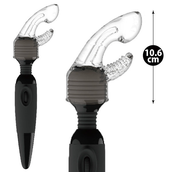 ●デュアルスティミュレーション(クリア)ver●簡単に曲げられる柔軟なエラストマー素材●アソコとクリを同時に刺激するW責めヘッド●ヘッド径4.5〜5.2cmの電マに使用可能。