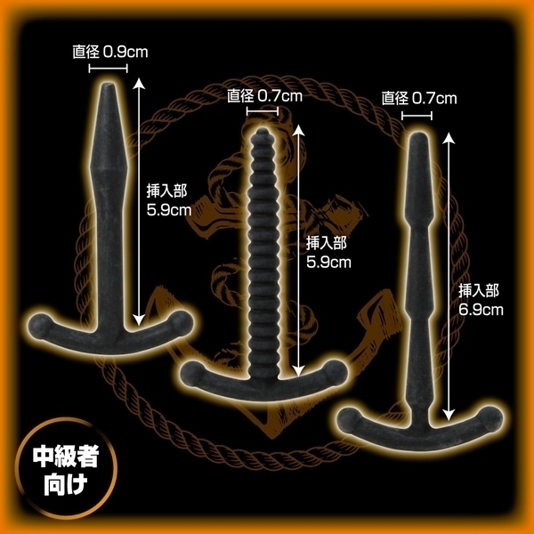 CBT中級者さんの尿道責めプレイに♪錨デザインの尿道プラグ3個セット「メイルデバイスアンカー インターメディエイト」。