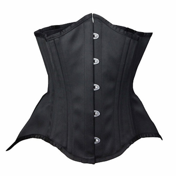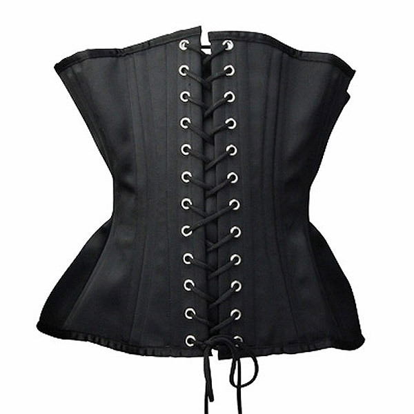 しなやかに曲がるボーン(骨)でくびれラインを美しく演出するSMボンデージコスチューム「ブラックサテン アンダーバストコルセット」。