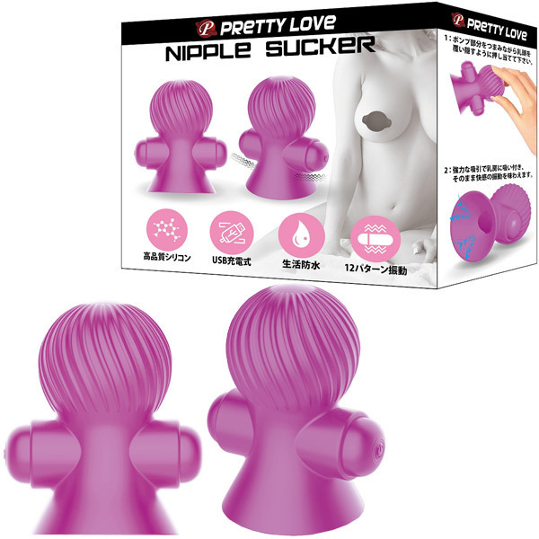 人形みたいに可愛らしい2個1組の本体は、肌触りの良い高品質シリコン製!ポンプでしっかり吸い上げた乳首を強力振動でダイレクトに刺激します。