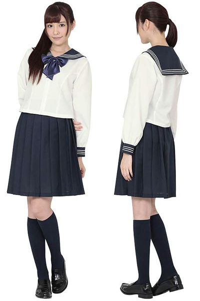 ミドル丈のスカートにはプリーツがたくさん入っていて、正統派の学校制服となっていますが、着用もしやすくホワイトと紺のカラーにより清潔感と清楚さもあわせ持っています!イベント用としてはもちろん、学生気分に浸りたいときにもオススメです。