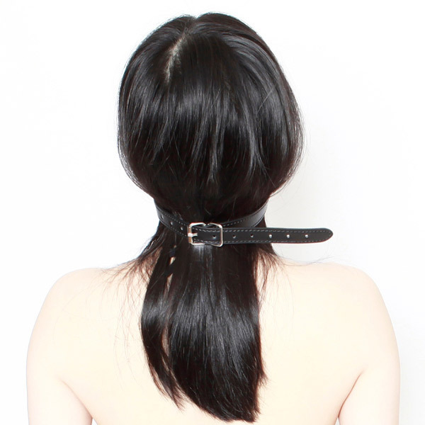 イラマチオ動画さながらの刺激的なプレイを楽しめる!合皮ベルトと高品質シリコンの黒い唇で口元を固定する口枷。