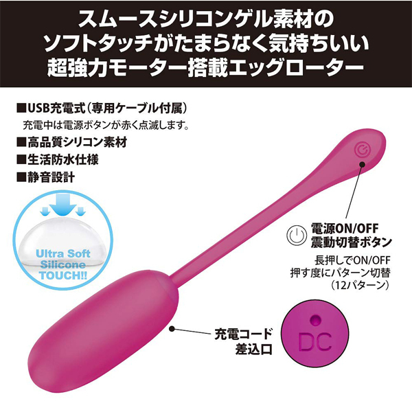 ●高品質シリコン+スムースシリコンゲル素材●12パターン強力震動●静音設計●生活防水●専用USB充電コード付属