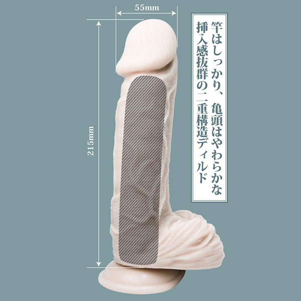 外側は柔らかな素材で超リアルな肉感!硬めの芯と柔らかな亀頭・皮のリアル二重構造。