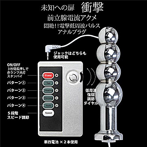 未知への扉、前立腺電流アクメ!低周波の刺激でビクンビクンと脈打つ刺激的な金属製アナルプラグ。