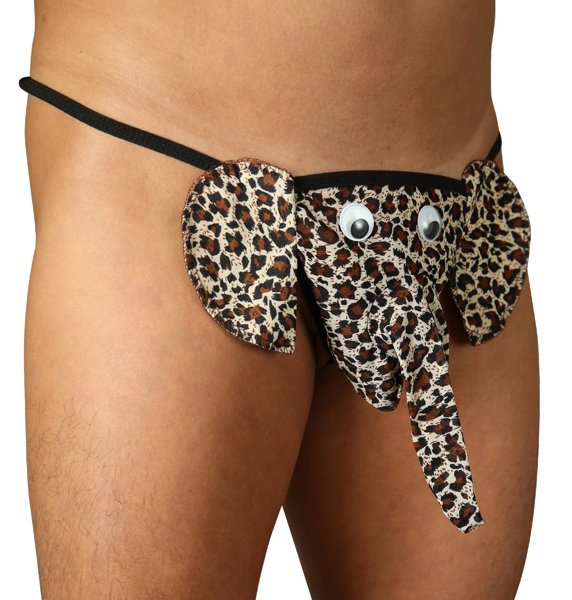 ハロウィンにも最適!豹柄のゾウが逞しさを強調するおもしろ系メンズ用Tバック。