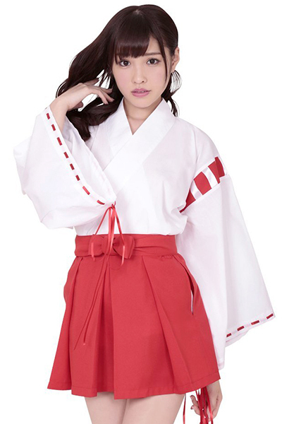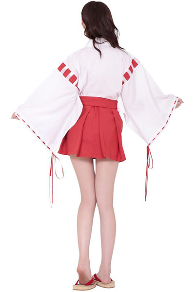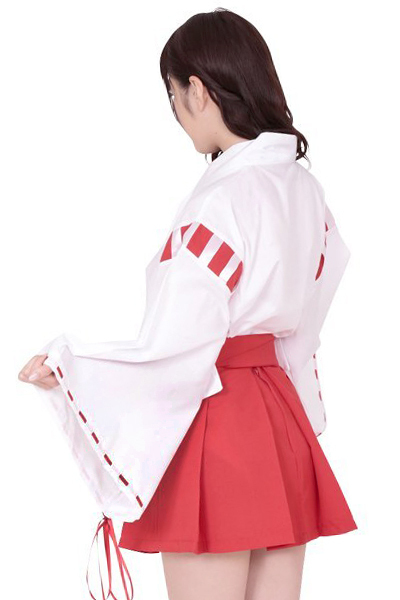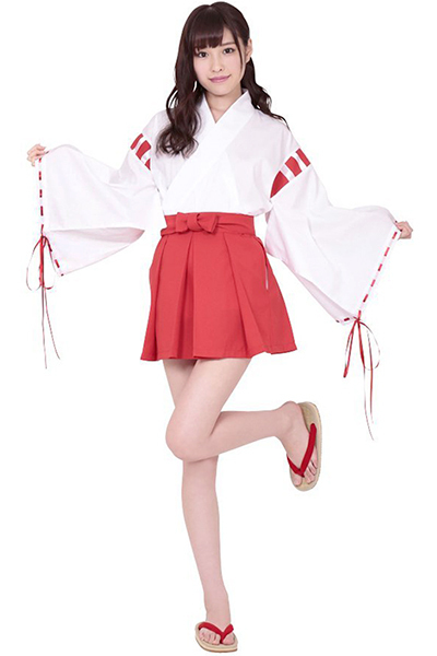 大人気の巫女さんコスプレに大きめサイズが登場!白の着物に赤のパイピングがアクセントになった巫女コスプレ。