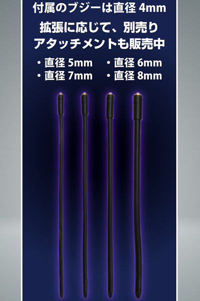 ループを巻き付けブジーを挿入、あとはリモコンに接続するだけで低周波パルスによる電流責めが体感できる!4パターンのパルス×5段階のスピードを搭載♪普通の刺激では物足りない、より強い刺激をお求めの方に