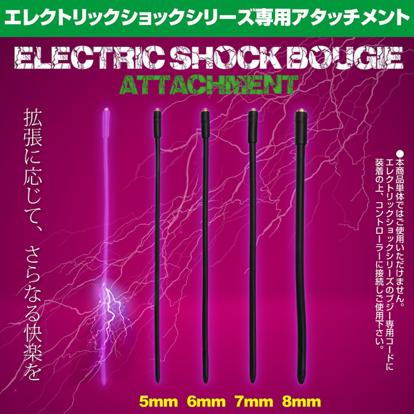 尿道に挿入するだけでビリビリと痺れるような電撃が味わえる!別売り「エレクトリックショックコックループ(b29062)」に繋ぎ自分に合ったサイズで楽しめる専用ブジーアタッチメント(8mm)。