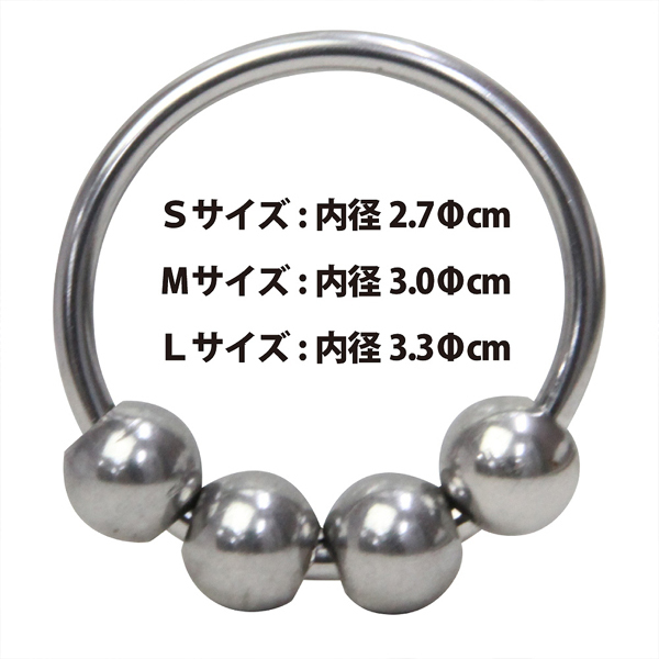カリ首を締め付けながら、4つの動く球体で男性自身とパートナーのGスポを刺激するメタル製コックリング。