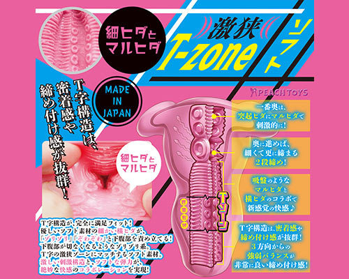 締め付け&密着感抜群のT字型T-zone構造が絶妙な快感をもたらす日本製の非貫通オナホ。