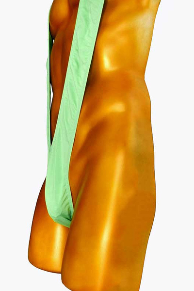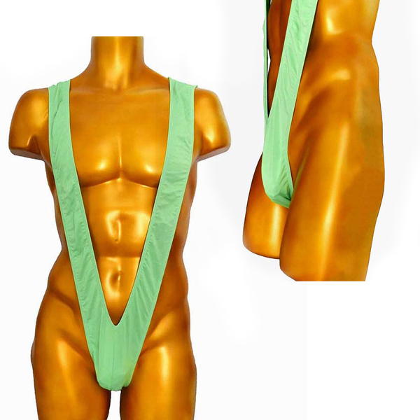 股間から背中へ回り込むように大きくV字に走る生地で筋肉を猛アピール!シンプルでオーソドックスなタイプのマンキニです。