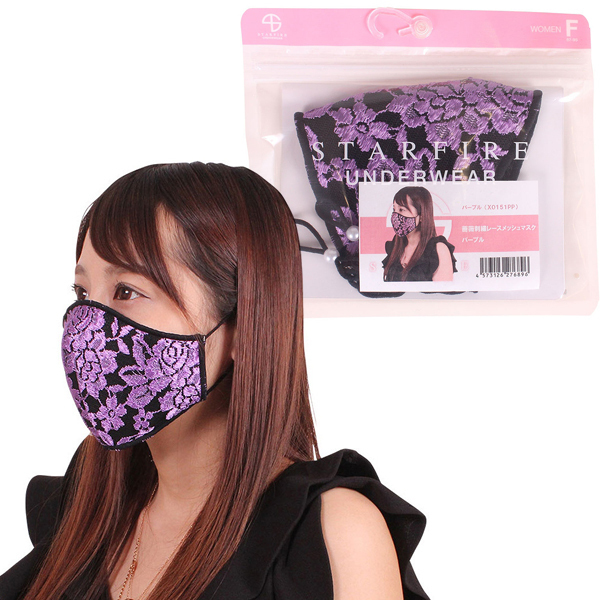 薔薇刺繍レースメッシュマスク パープル