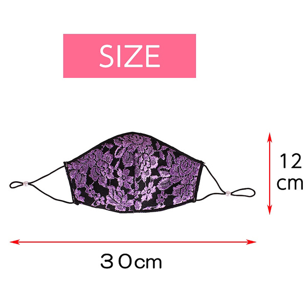日々のマスクコーデに!紫の薔薇刺繍レースがお洒落な三層構造仕立ての大人用マスク。