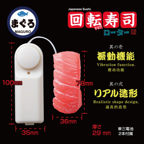 うっかり食べてしまいそうなくらいに精巧!寿司ネタの王様「マグロ」を完全再現した振動機能付のユニークな電池式ローター。