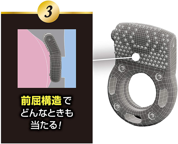 新感覚のペニス用振動リングが登場しました!バイブレーションリングとも呼ばれ、強力振動と特殊ハニカム構造が相乗効果を発揮します♪振動部がしっかり当たる前屈構造で、押し当てることで幅広突起部の多数の面が刺激します。