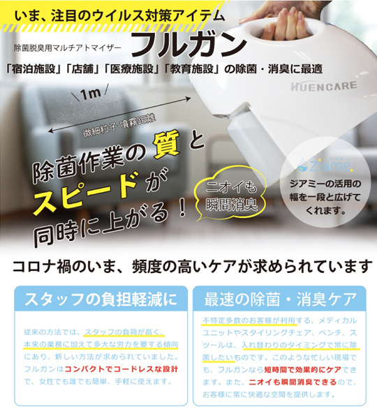 気になるウイルスや菌対策に、除菌脱臭用マルチアトマイザー「フルガン」。