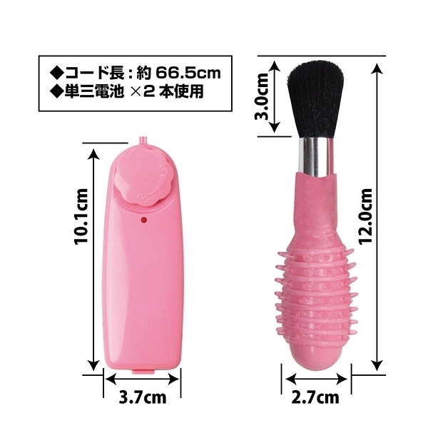 刷毛で焦らしながらローターでイカせる!気分を高揚させたいときやいつもと違う雰囲気で楽しみたいときにはコレ!刷毛による絶妙な感触が楽しめるローターです♪強力モーターを内蔵していてパートナーの体を撫でるだけでも楽しめますし、ローターの表面にはイボヒダ加工が施されているので当てたり挿れたりしても楽しめます!電源は単3電池2本で動くタイプでコードで繋がったコントローラーにセットする仕様です。
