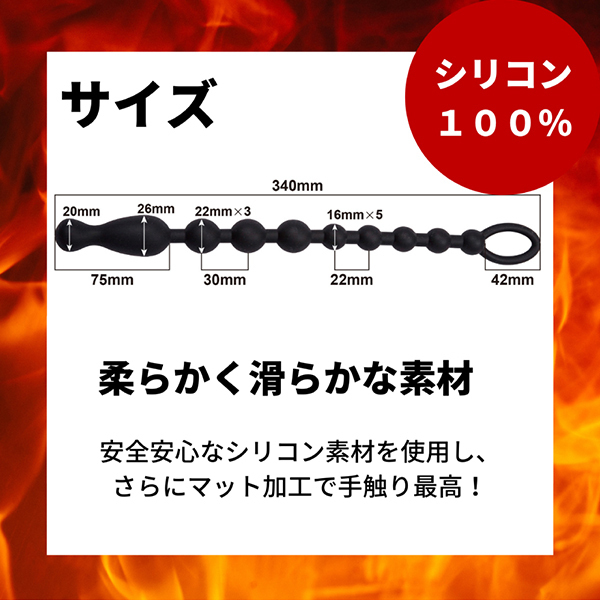 アナルにぬぷぬぷとインしながらズリュっと引き抜く!100%ピュアシリコンで安心安全な10個のビーズが連なった取っ手付きのアナルビーズです。