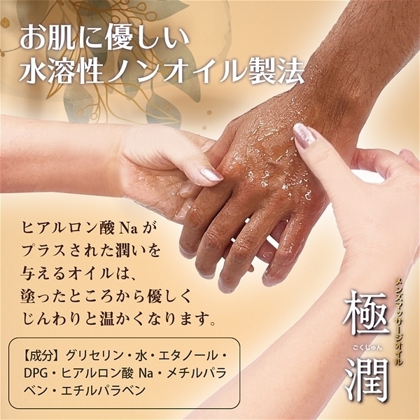 「最上級の潤い」、「最上級の滑らかさ」、さらに「最上級の使いやすさ」を追い求めて完成したマッサーオイル「極潤」。