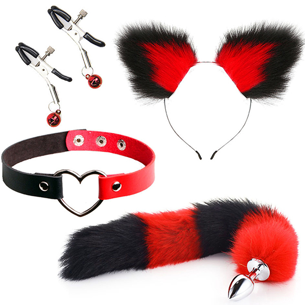 パッケージ:30.0×22.0×3.0cm 本体:耳カチューシャ約20cm×約20cm・首輪直径約12〜14cm・ップルクリップ(ハサミ口最大約1.6cm・長さ約5.6cm)・しっぽアナルプラグ直径約2.7cm・しっぽ長さ約40cm セット内容:耳カチューシャ、首輪、ニップルクリップ、しっぽアナルプラグ 原産国:中国 重量:本体135g