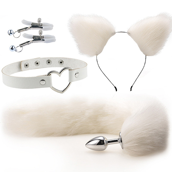 パッケージ:30.0×22.0×3.0cm 本体:耳カチューシャ約20cm×約20cm・首輪直径約12〜14cm・ップルクリップ(ハサミ口最大約1.6cm・長さ約5.6cm)・しっぽアナルプラグ直径約2.7cm・しっぽ長さ約40cm セット内容:耳カチューシャ、首輪、ニップルクリップ、しっぽアナルプラグ 原産国:中国 重量:本体135g