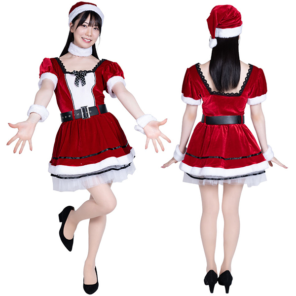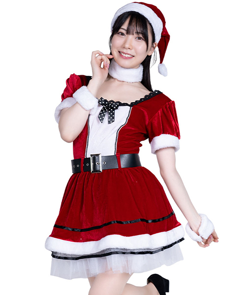 胸元のホワイトが印象的なサンタワンピースが登場!流行のタイトデザインでも水玉リボンでどこか懐かしいクラシックな雰囲気。
