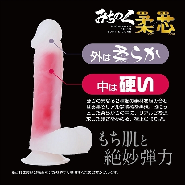 このみちのくディルド柔×芯の最大の特徴は「外は柔らかく、中は硬い」二重構造です。