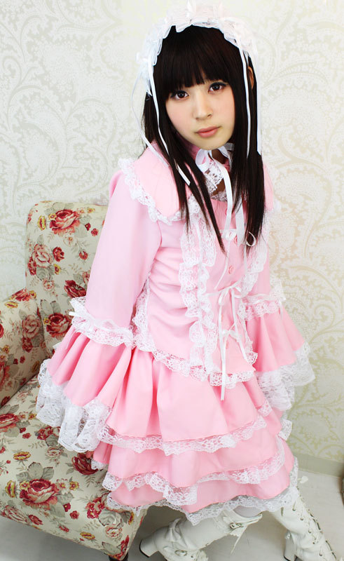 たっぷりのフリフリレースでボリューム感を持たせた、ピンクのチュールメイド服(M)。