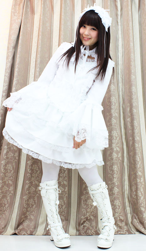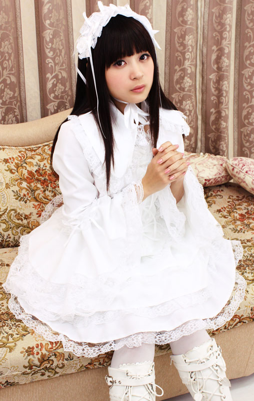 たっぷりのフリフリレースでボリューム感を持たせた、真っ白なチュールメイド服(M)。