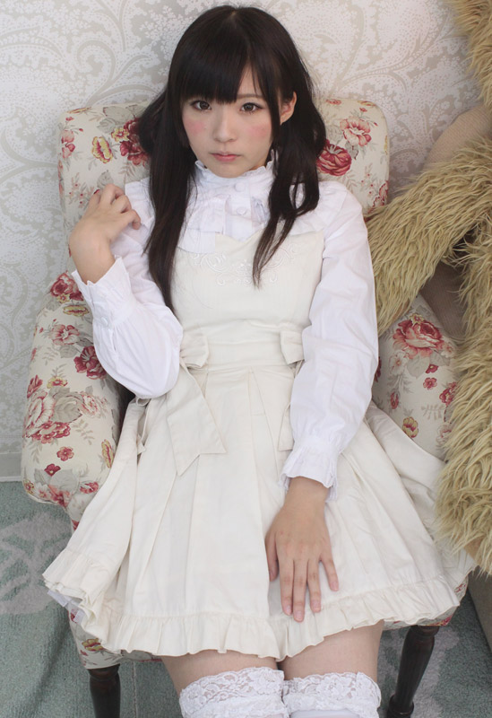 ふんわりフリルが可愛いロリータ服!クラシカルなオフホワイトのジャンパースカート&長袖ブラウスセット(BIG)。