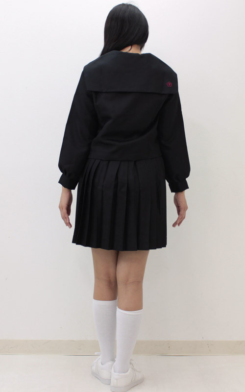 大きく結んだエンジのリボンスカーフが可愛い!ブラックカラーが珍しいセーラー服。