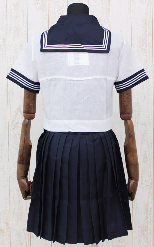 ●爽やかな半袖セーラーブラウス&紺色スカート●セーラー襟&袖に3本の白ライン入り●可愛らしい小ぶりな紺色リボン。