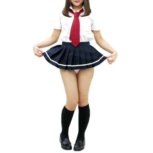 女子校生の制服コスプレには欠かせない定番のプリーツスカートですが、この超マイクロミニ丈はなかなか無い逸品。