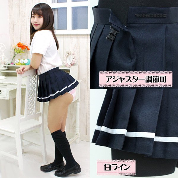 HOME > コスプレ衣装 > 小道具(ニーソックス・猫耳) > 超ミニ無地プリーツスカート単品 紺×白ライン M