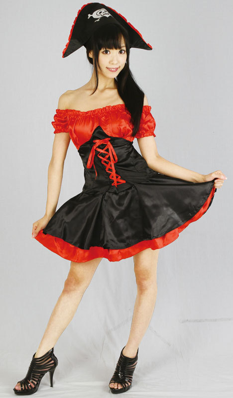 セクシーでキュートな女海賊に変身!赤と黒の可愛らしいパイレーツコスチュームです。