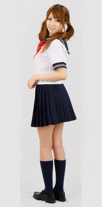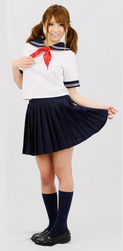 憧れの制服コスプレと言えばやっぱりコレ!襟&袖に白の2本ライン、赤リボンで仕上げた正統派の夏服セーラーコスチューム。