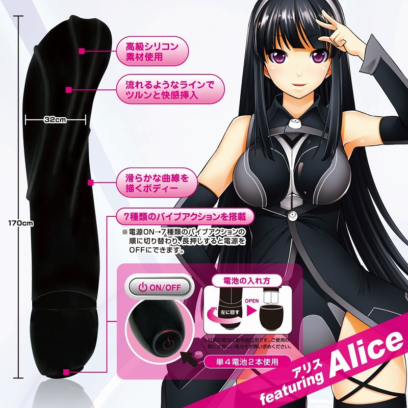 パッケージモデル「Alice」の滑らかな曲線を描いた、高級シリコン素材のブラックカラーボディが挿入をサポート!使い方は至って簡単!底に付いたスイッチを押す度に振動が切り替わり、長押しで電源をOFF!7種類の振動を搭載しているので、アナタが一番感じる振動を探しながらお楽しみ頂けます。