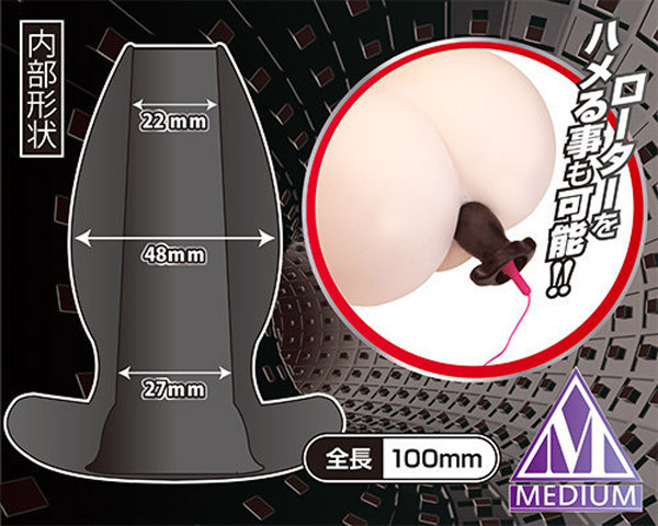 ●中級者も満足な全長10cm、最大径48mmのMサイズ●空洞部分の内径は22mm〜27mm●ローションの注入にも便利●細身のローター挿入もOK。