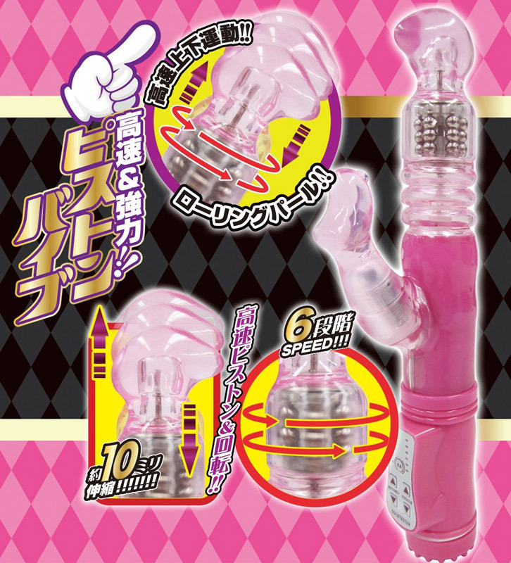 超高速ピストン+回転機能で大量潮吹きを体験!ナカへの刺激に加え、大きめのクリバイブが外からも刺激する悶絶級のバイブレーターです。