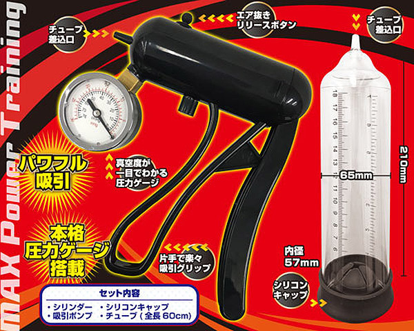 シリンダーは目盛付きでどれだけサイズがアップしたかをすぐに実感できるから、毎日の鍛錬がきっと楽しみの一つに♪また、吸引ポンプは目視できる圧力ゲージ付きで安全にも配慮された設計。