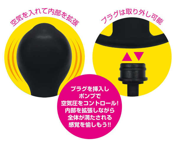 プラグを挿入しポンプで空気圧をコントロール!プラグは取り外せるので丸洗いも可能。