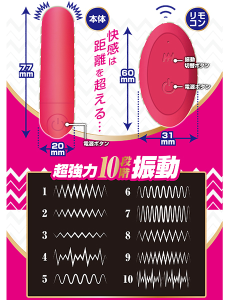 本体は10段階振動を搭載し、10mの距離まで遠隔操作可能!防水製なのでお手入れも簡単です♪USB充電式
