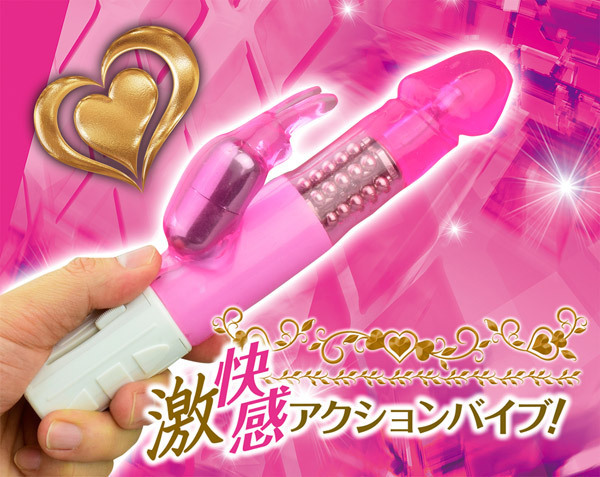 内部をグリグリ刺激するハイパワースイングとパール大回転に加え、ウサ耳型の超速クリバイブ振動も搭載した激快感アクションバイブ。