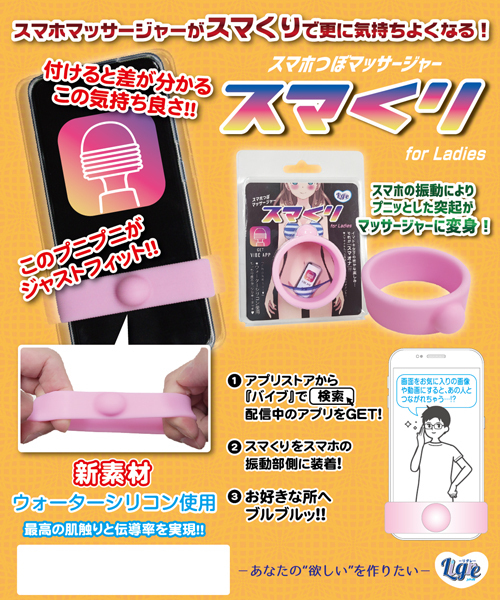 携帯端末に本品を装着し、ダウンロードしたアプリで振動させるだけ!あとは自分の敏感な部位にフィットさせれば、どこでも手軽にピンポイント刺激が味わえる♪もっちりとした質感で伝導率抜群な新素材ウォーターシリコンを使用したお手軽携帯グッズです。